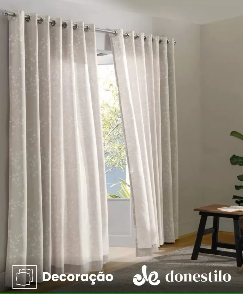 A Cortina Jacquard Döhler Vivian 3,00 x 2,50 m é composta por 100% poliéster e possui gramatura de 204 g/m². Graças ao tecido translúcido, oferece privacidade, conforto e suavidade à iluminação natural.