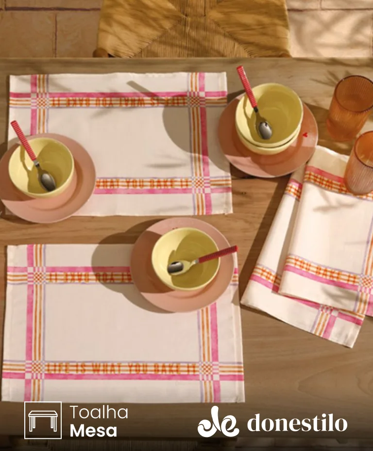 O Jogo Americano Döhler Renova Candy (4 peças), 45 cm x 31 cm. Confeccionado com 50% algodão e 50% poliéster, oferece o melhor dos dois materiais: a maciez do algodão e a durabilidade do poliéster. Com densidade de 170 g/m², é leve e fácil de manusear.