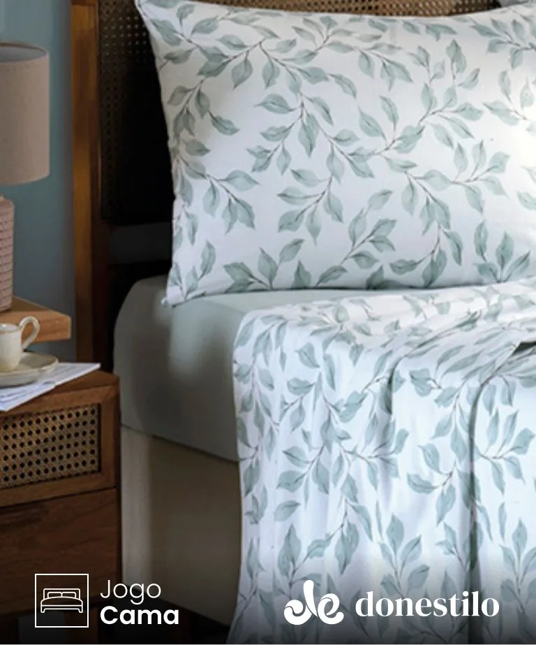 A estampa de folhagens transmite frescor e um visual natural, criando um ambiente acolhedor e harmonioso. O jogo combina com diversos estilos de decoração.