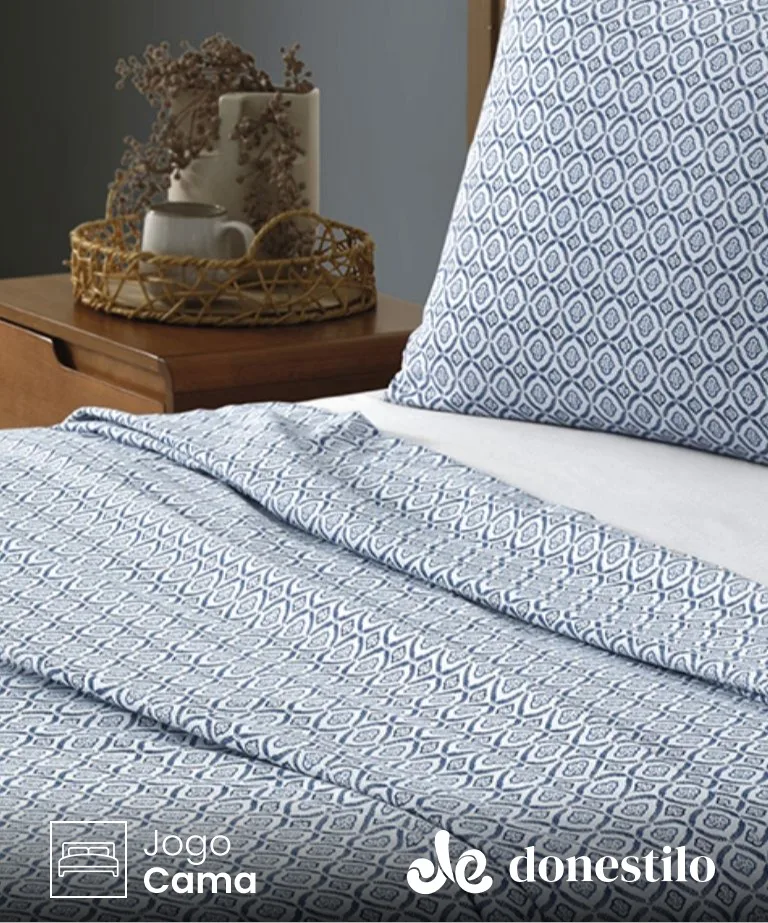 O Jogo de Cama Solteiro 3 peças Döhler Veneto oferece conforto, qualidade e estilo para o seu quarto. A Döhler produz esse jogo com 100% algodão, garantindo maciez e durabilidade. Com 115 g/m² e 150 fios, ele proporciona uma textura suave ao toque. Estampa geométrica elegante em tons suaves de azul, que transmite sofisticação e aconchego.