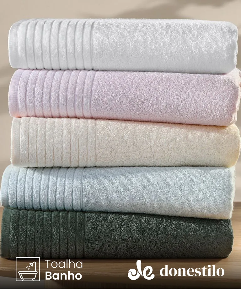 Toalha de Banho Döhler Mônaco 70×140 cm, 100% algodão 500 g/m². Garante maciez, alta absorção e durabilidade com acabamento Air Touch e barra jacquard elegante.