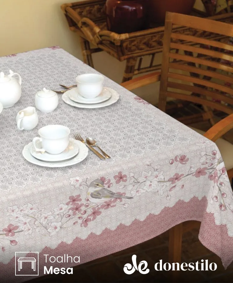 Sua estampa ilustra delicadamente a beleza da vida campestre com flores e passarinhos.