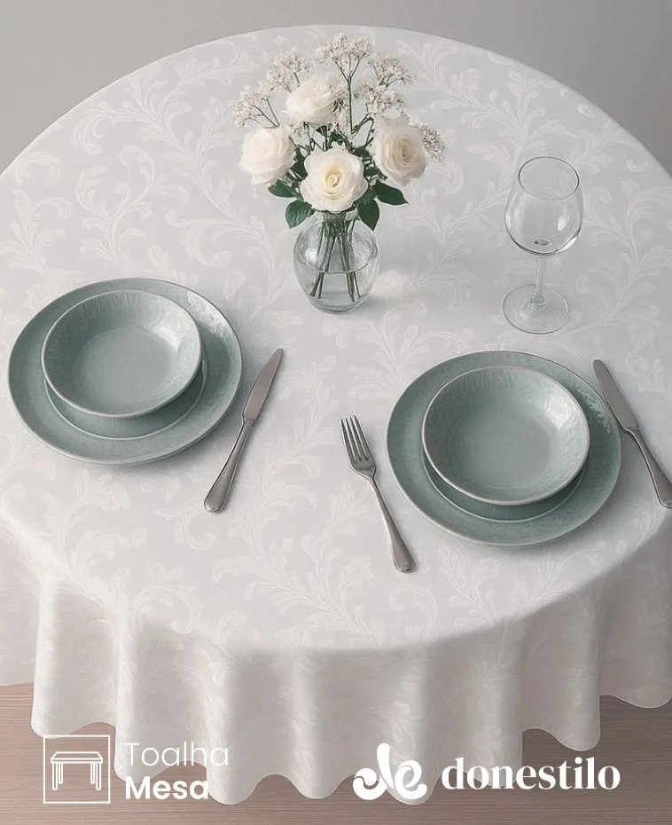 Toalha de Mesa Redonda Döhler 4 lugares Requinte TJ 4668 1,60 m