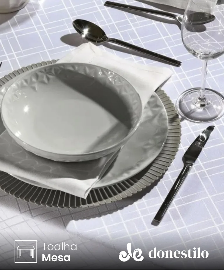 Toalha de Mesa Retangular Döhler Requinte II TJ5795 (1,60m x 2,70m) para 8 lugares. Feita em Jacquard 100% poliéster, oferece durabilidade, toque refinado e gramatura de 200 g/m². Ideal para quem busca elegância e funcionalidade à mesa.