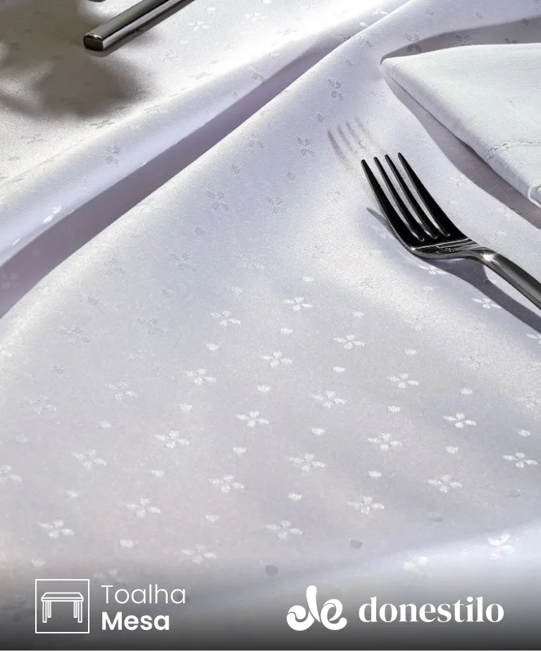 Toalha de Mesa Retangular Döhler Requinte II TJ5796 (1,60m x 2,70m) para 8 lugares. Em Jacquard 100% poliéster e 200 g/m², une durabilidade, elegância e conforto à sua mesa.