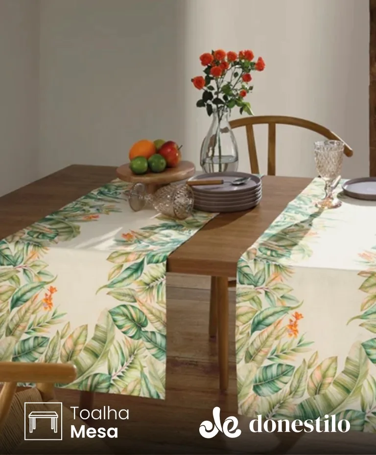 Tecido misto (50% algodão e 50% poliéster) com tecnologia Döhler Clean, que facilita a limpeza e mantém sua mesa posta bonita por mais tempo.