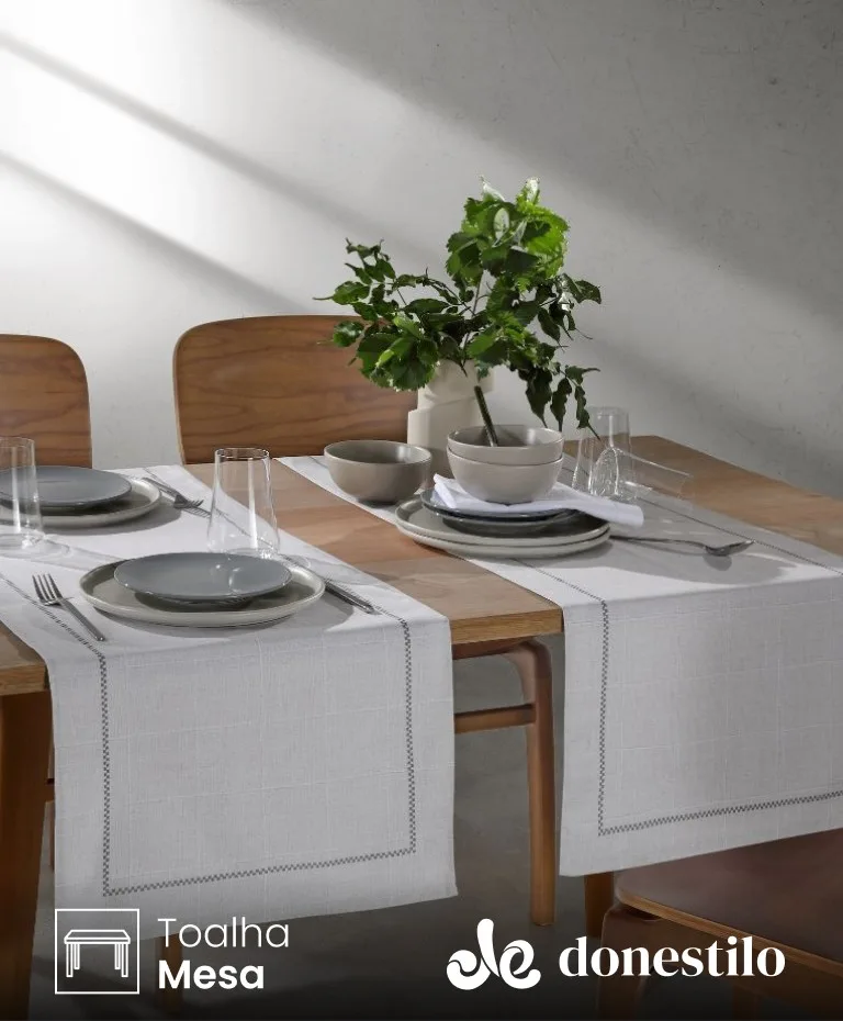 Com 45 x 160 cm, o trilho transforma qualquer mesa em um espaço charmoso e funcional. O modelo apresentado tem um design minimalista e elegante.